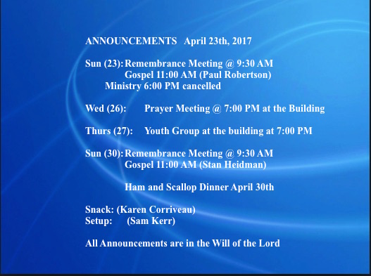 Announcements April 23 2017