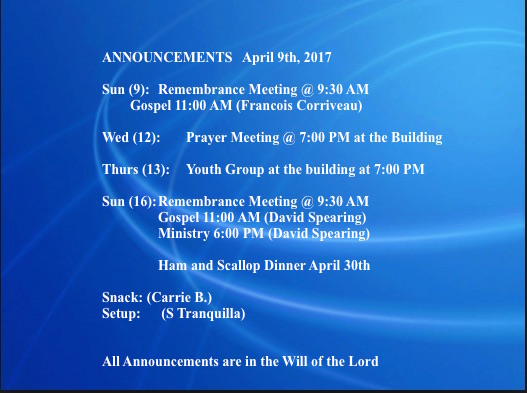 Announcements April 9 2017