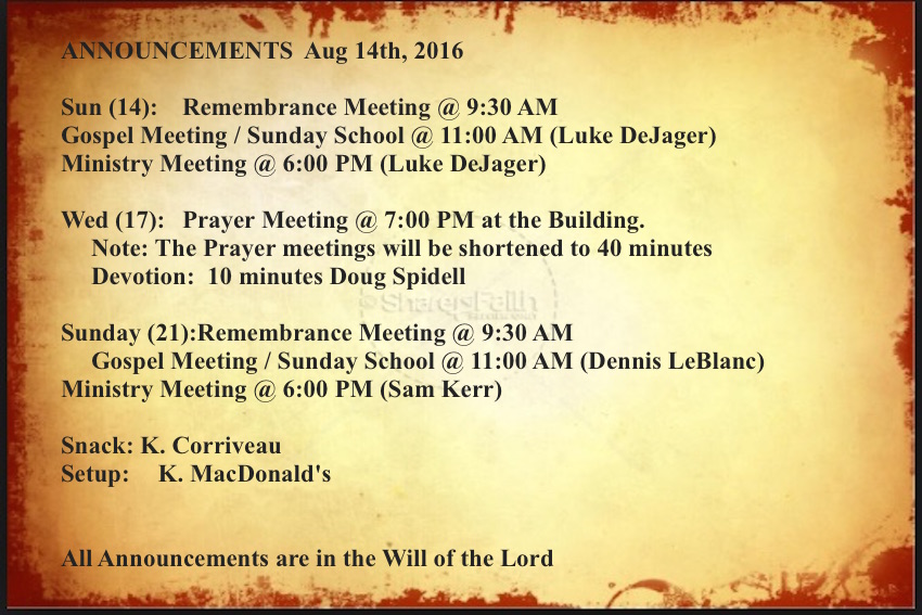 Announcements Aug 14th 2016