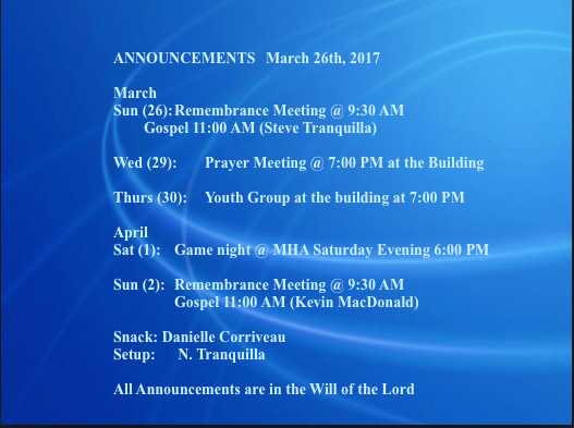 Announcements March 26 2017